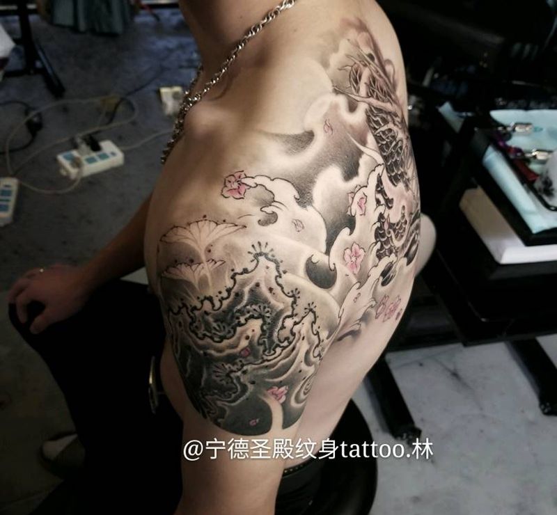 • 纹身吧推荐的披肩图腾半胛纹身图案作品展示