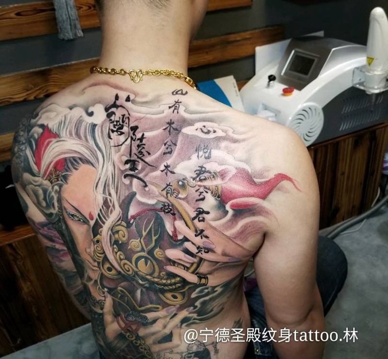 黑灰满背纹身图案