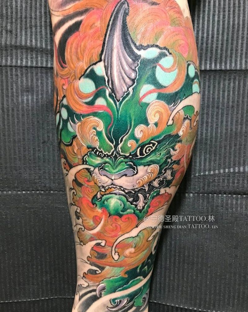 当前位置: 首页 >福建省宁德市纹身店-宁德圣殿纹身纹身图案>唐狮纹身图片_腿部纹身图案