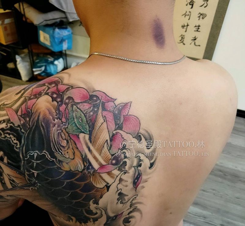 当前位置: 首页 >福建省宁德市纹身店-宁德圣殿纹身纹身图案>(鲤鱼)覆盖纹身图片_新传统纹身图案