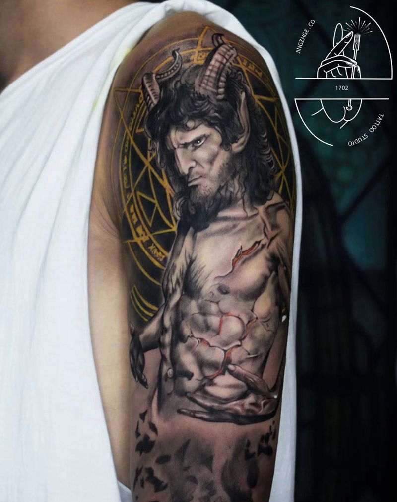 撒旦,花臂未完成纹身图片_手臂纹身图案