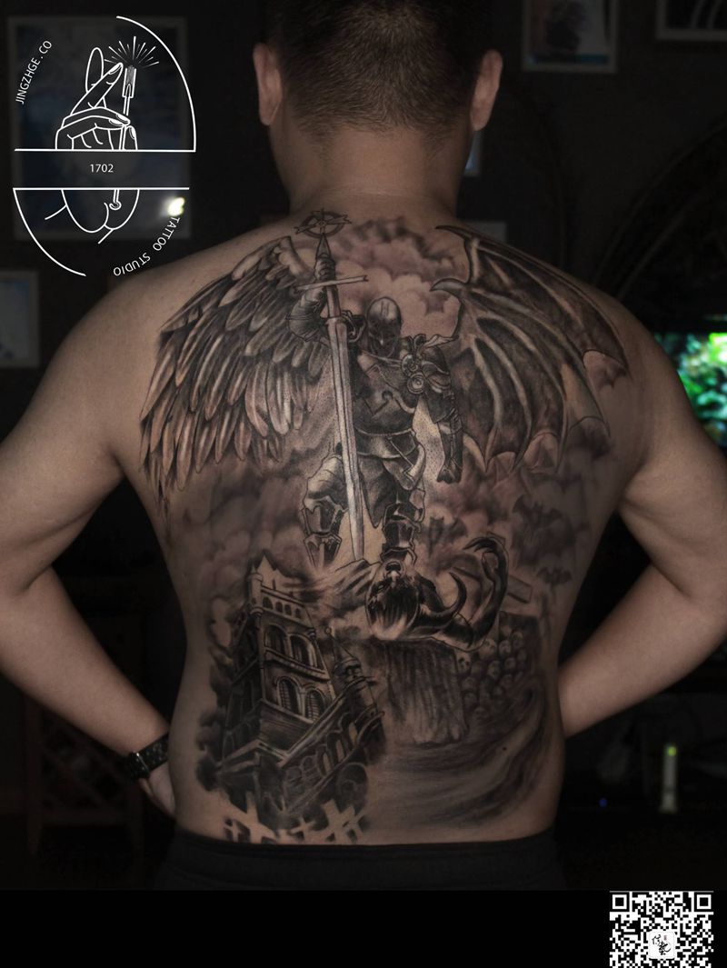 黑灰满背纹身图案