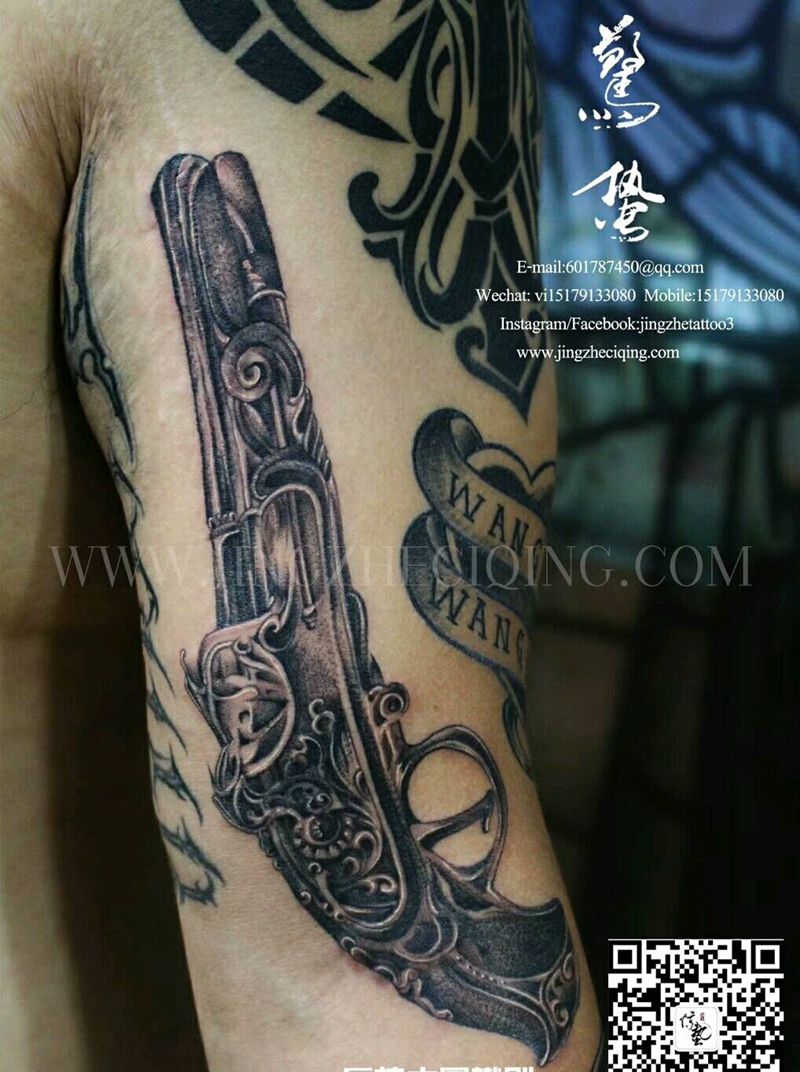 当前位置: 首页 >江西省南昌市纹身店-惊蛰刺青纹身图案>复古手枪纹身图片