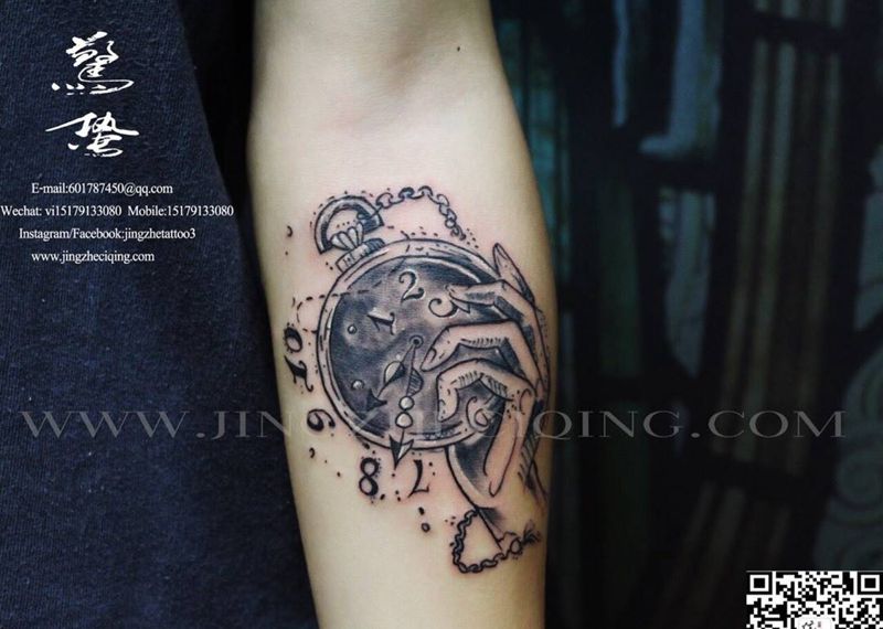 当前位置: 首页 >江西省南昌市纹身店-惊蛰刺青纹身图案>黑灰钟表纹身图片