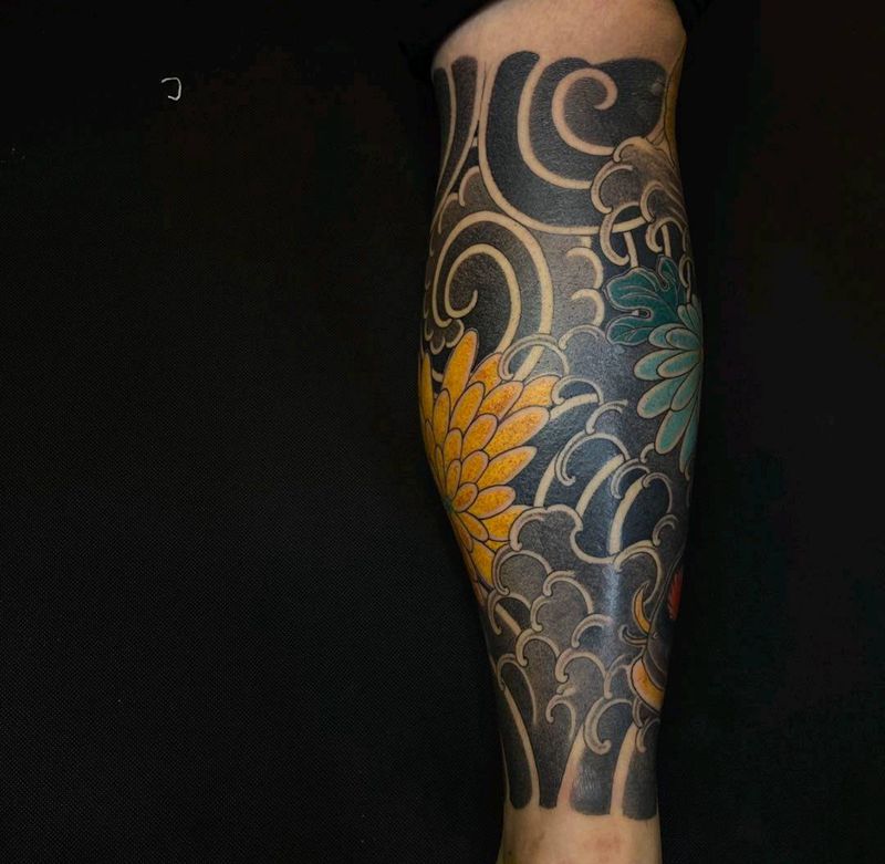 当前位置: 首页 >福建省宁德市纹身店-宁德臻刺青纹身工作室纹身图案>鲤鱼包小腿纹身图片_腿部老传统鲤鱼纹身图案