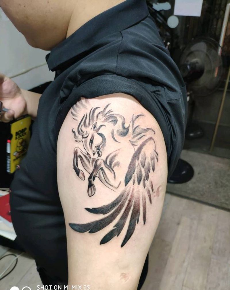 飞马纹身图片_臀部欧美写实纹身图案