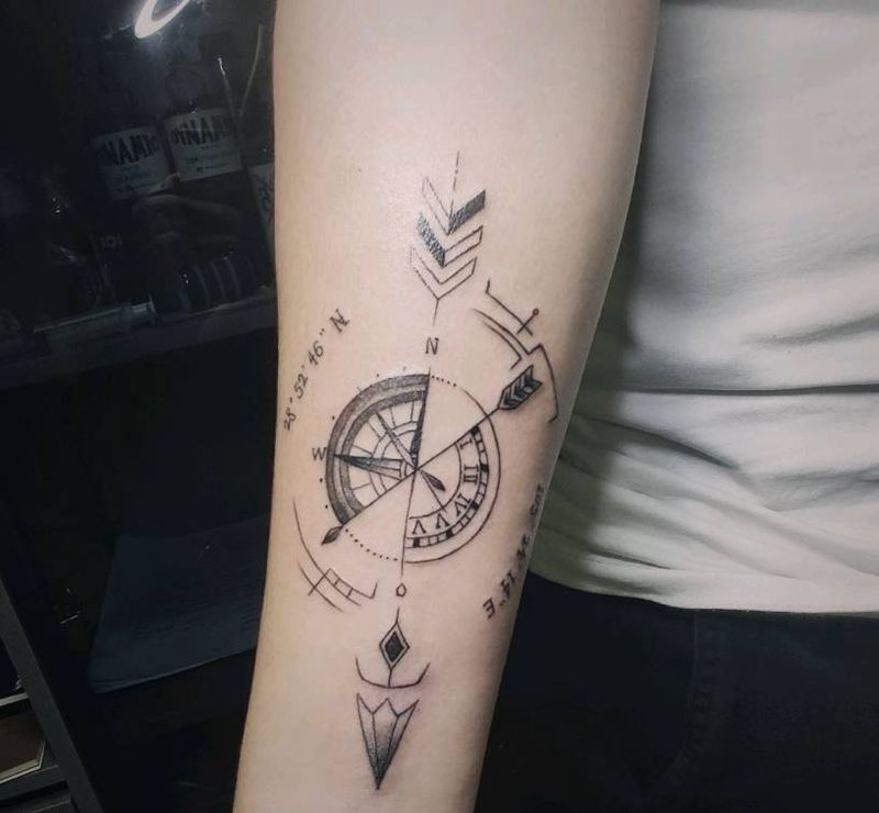 当前位置: 首页 >福建省宁德市纹身店-行樂刺青纹身图案>方向纹身图片_手臂几何指南针纹身图案