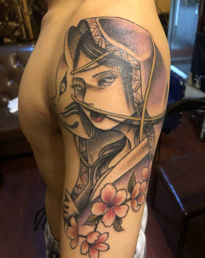 当前位置: 首页 >江西省南昌市纹身店-章鱼刺青纹身图案>艺妓纹身图片_手臂New School纹身图案