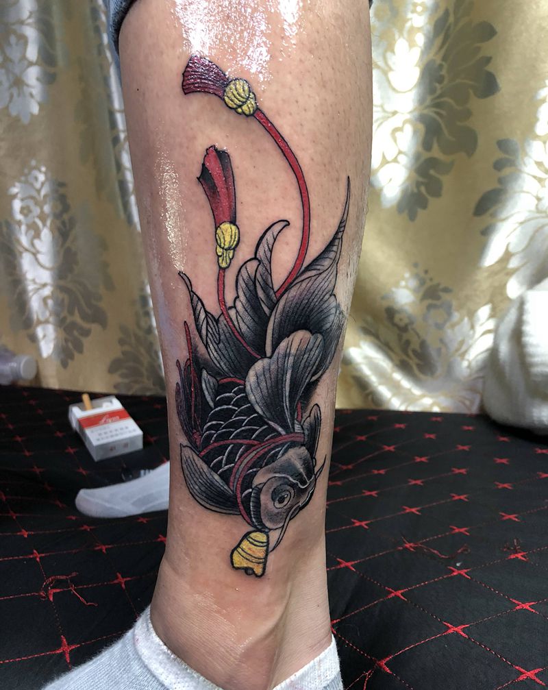 • T网红王老大花腿龙纹身图片_腿部新传统纹身图案