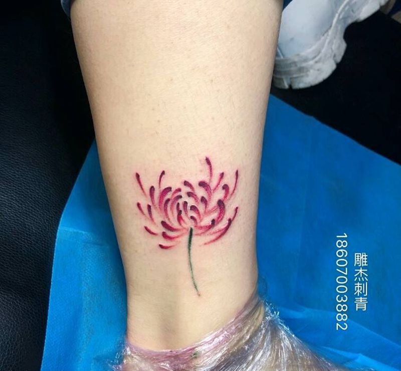 小小彼岸花纹身图片_脚部腿部水墨点刺纹身图案