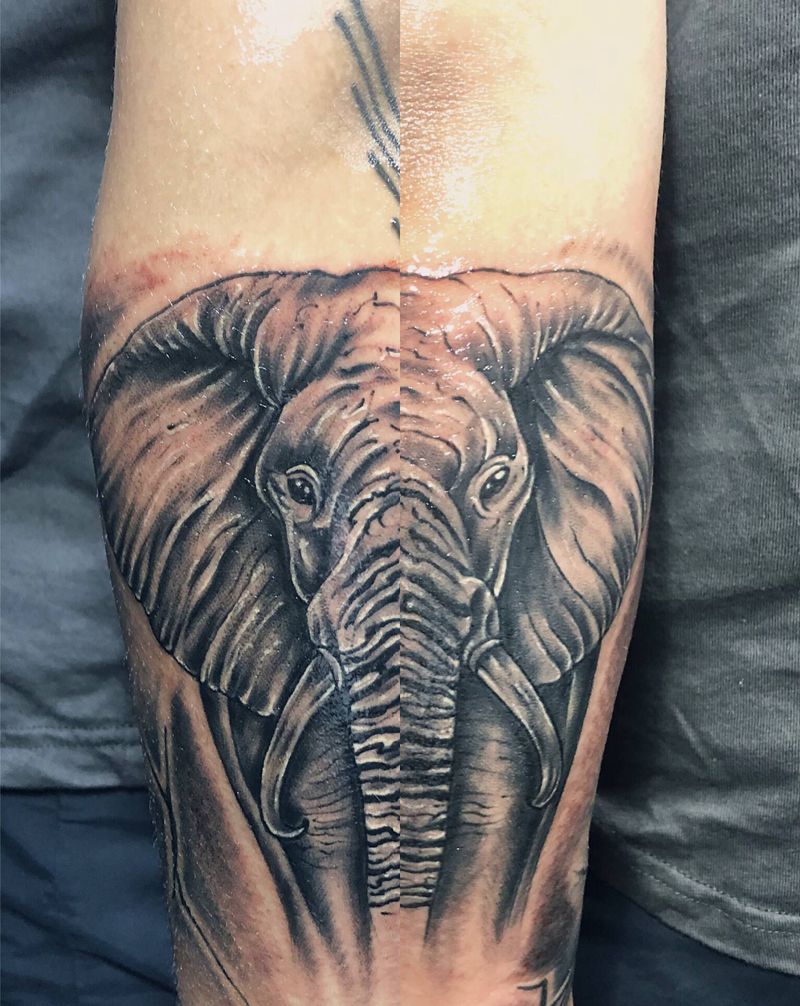 大象纹身图片_手臂手部欧美写实动物小臂纹身图案