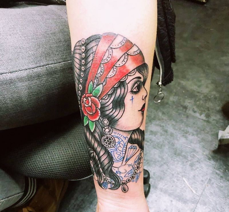 遮盖纹身图片_手臂手部Old School水彩纹身图案