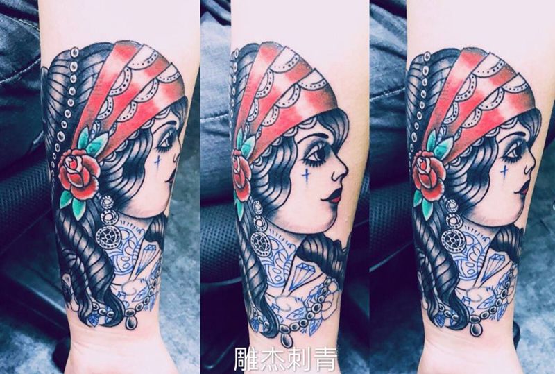 遮盖纹身图片_手臂手部Old School水彩纹身图案