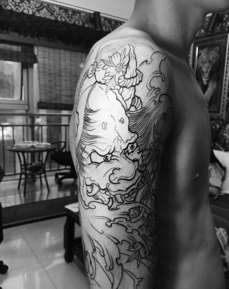 当前位置: 首页 >江西省南昌市纹身店-雕杰刺青工作室纹身图案>般若线条纹身图片_手臂成品传统人物鬼神宗教纹身图案