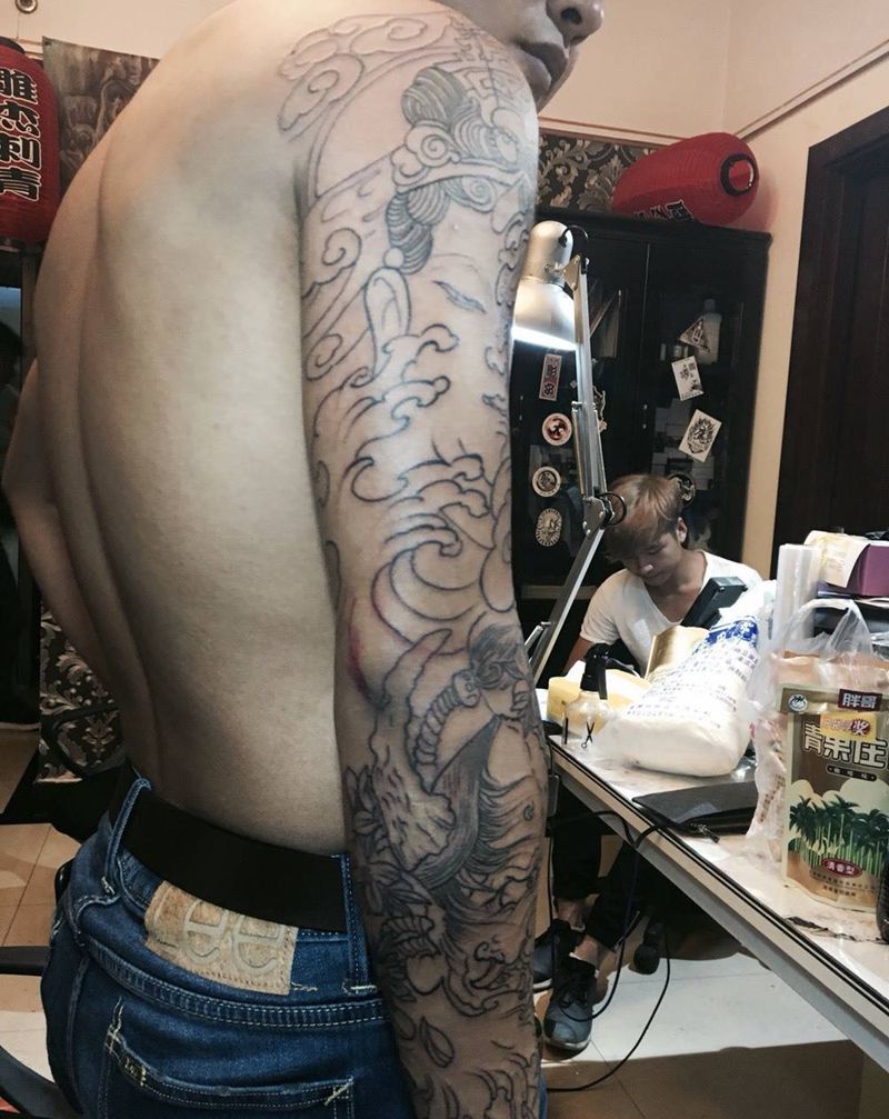 当前位置: 首页 >江西省南昌市纹身店-雕杰刺青工作室纹身图案>花臂线条完成纹身图片_手臂传统人物宗教纹身图案