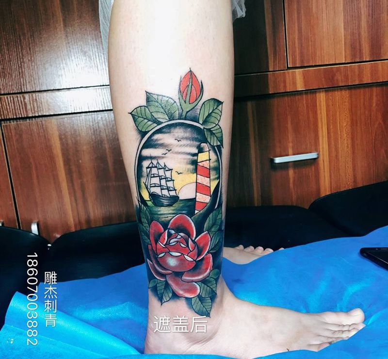当前位置: 首页 >江西省南昌市纹身店-雕杰刺青工作室纹身图案>遮盖旧纹身纹身图片_脚部Old School水彩纹身图案