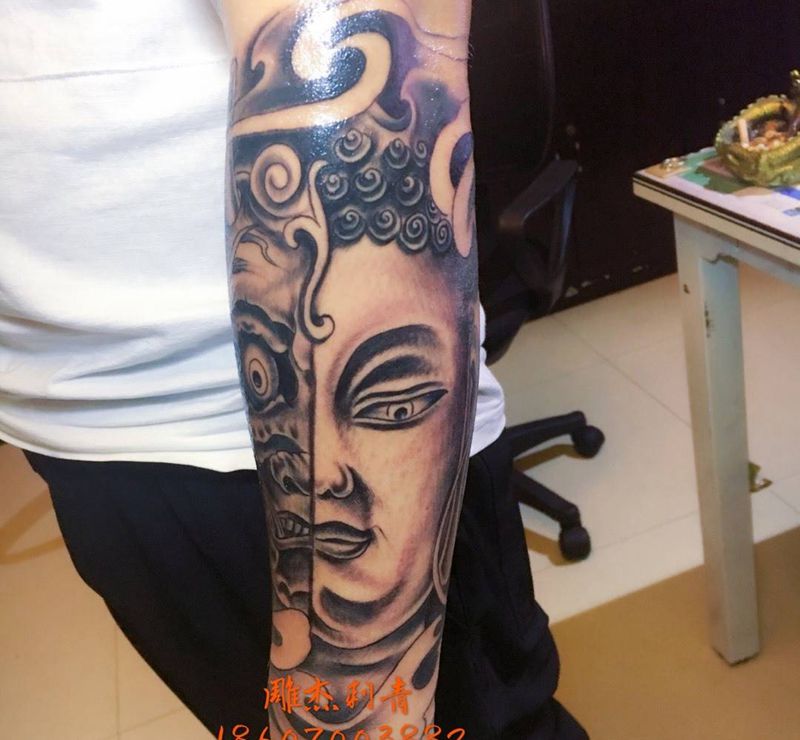 一念之间包小臂纹身图片_成品手臂手部传统肖像人物鬼神宗教纹身图案
