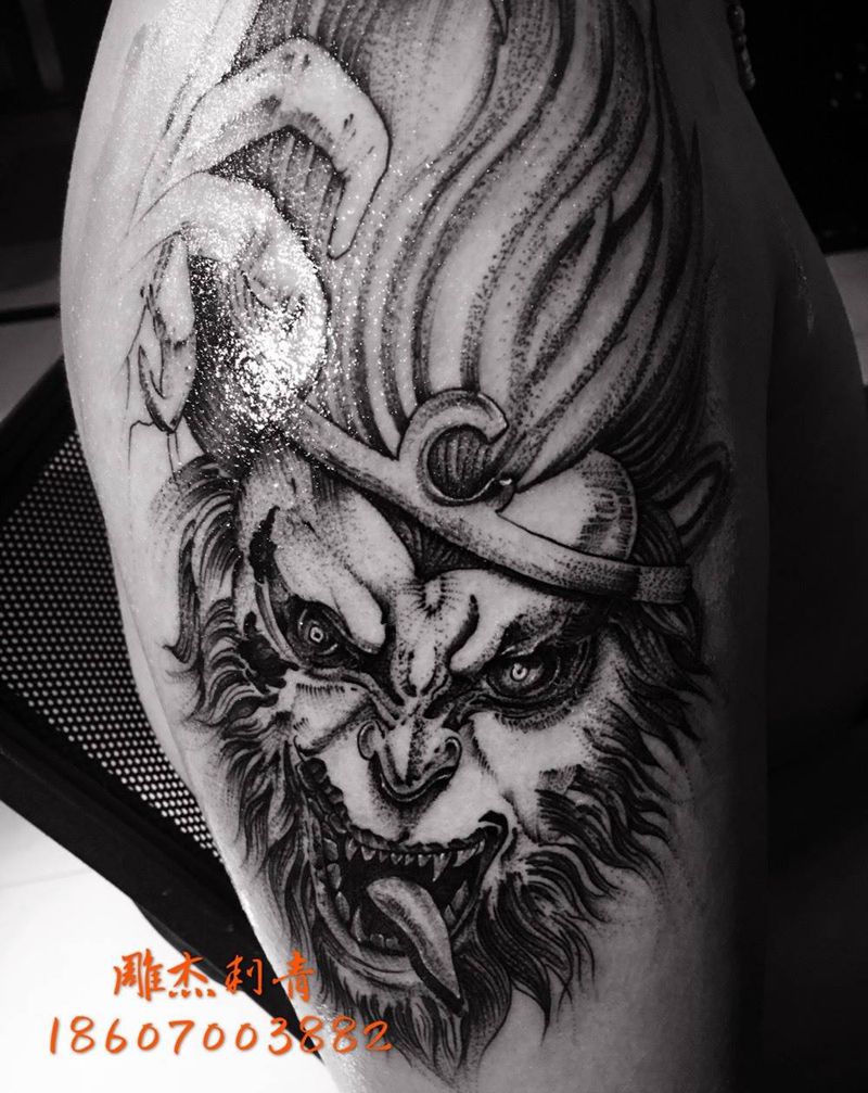 大圣纹身图片_成品手臂肖像习俗传统人物鬼神宗教纹身图案