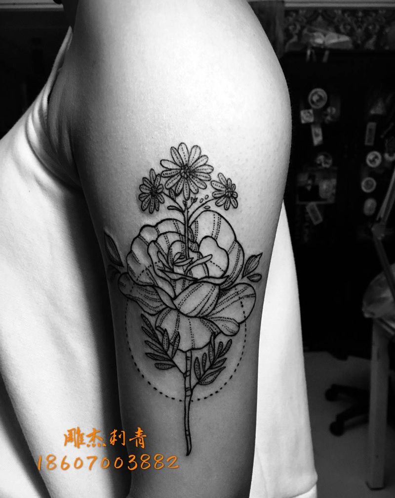 点刺花纹身图片_成品插画手臂手部欧美清新几何植物静物贴纸纹身图案