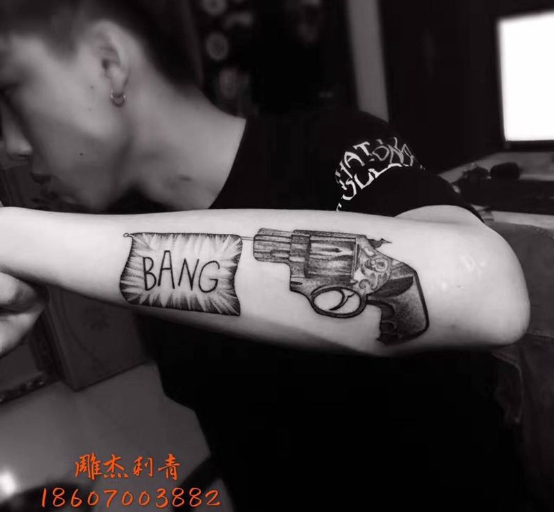 当前位置: 首页 >江西省南昌市纹身店-雕杰刺青工作室纹身图案>这是一把枪,哈哈纹身图片_成品手臂手部清新几何图腾纹身图案