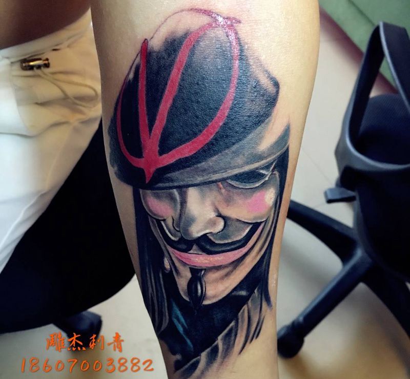 当前位置: 首页 >江西省南昌市纹身店-雕杰刺青工作室纹身图案>v字仇杀队纹身图片_成品手臂手部欧美肖像写实人物鬼神宗教纹身图案