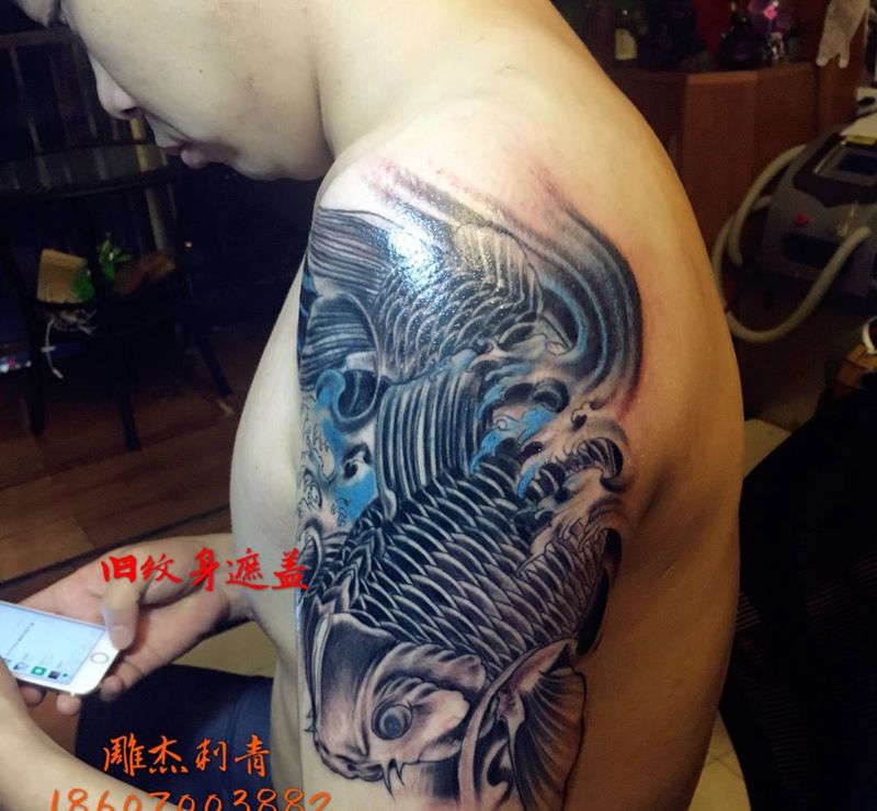 • 纹身吧推荐的披肩图腾半胛纹身图案作品展示