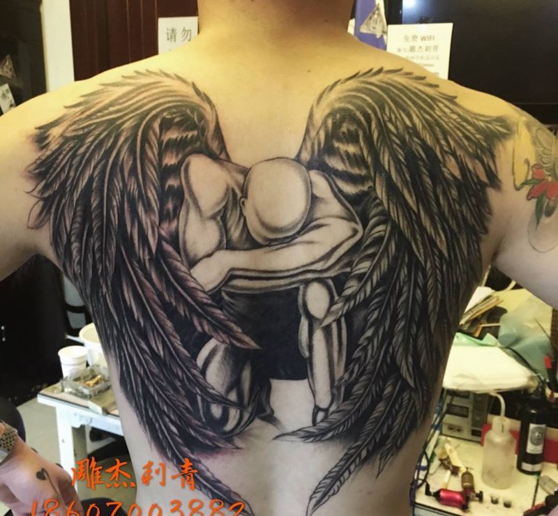 半背天使纹身图片_成品背部欧美肖像人物鬼神宗教纹身图案