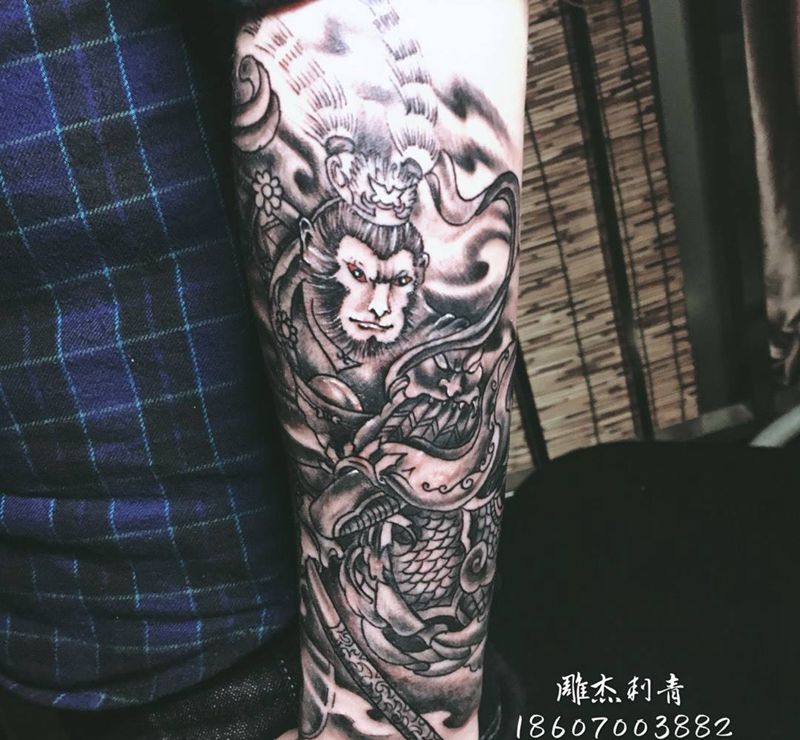 当前位置: 首页 >江西省南昌市纹身店-雕杰刺青工作室纹身图案>大圣纹身图片_成品手臂传统肖像人物鬼神宗教纹身图案