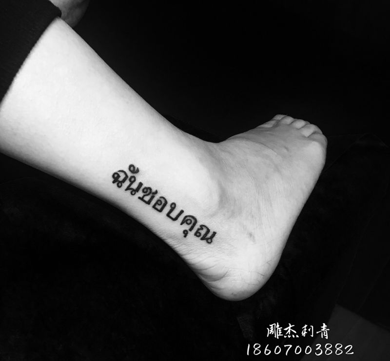 泰文纹身图片_成品腿部脚部清新字符纹身图案