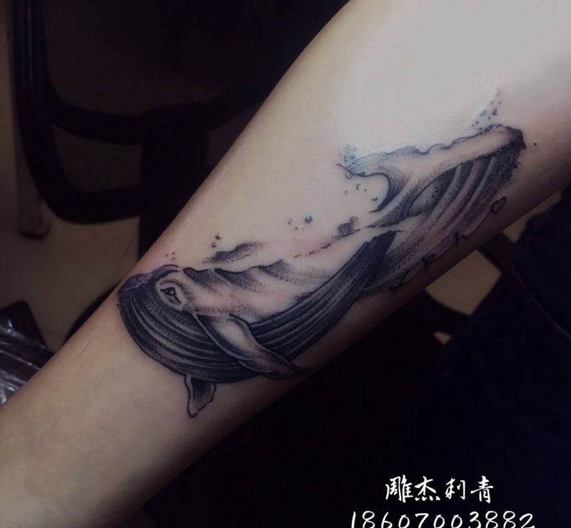 当前位置: 首页 >江西省南昌市纹身店-雕杰刺青工作室纹身图案>小鲸鱼纹身图片_成品手臂手部清新动物纹身图案