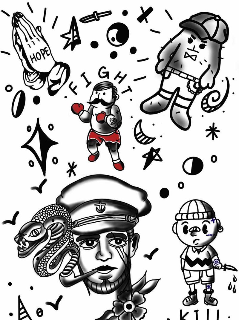最近手稿纹身图片_手臂腿部Old SchoolNew School纹身图案
