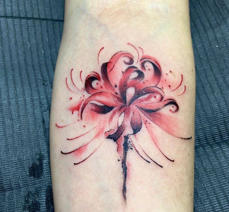 当前位置: 首页 >江西省南昌市纹身店-帝一刺青纹身图案>彼岸花纹身图片_手臂水墨纹身图案
