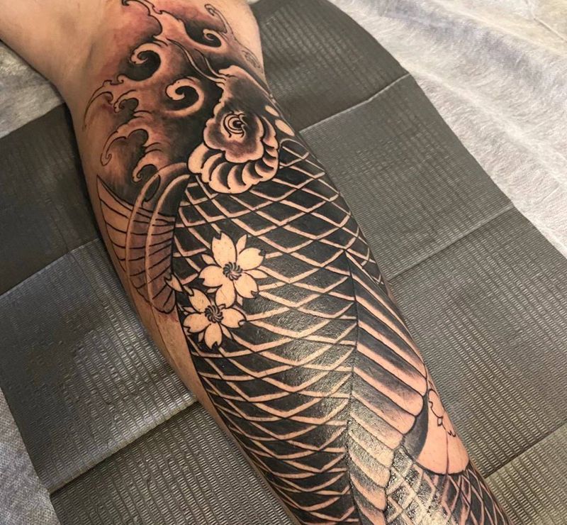 老传统鱼纹身图片_腿部纹身图案