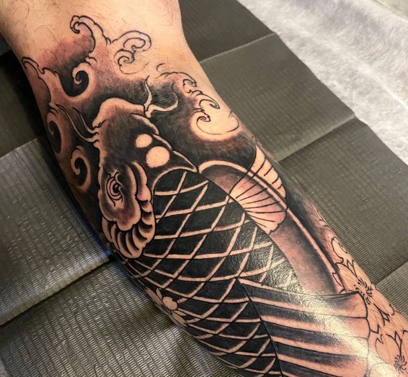 老传统鱼纹身图片_腿部纹身图案