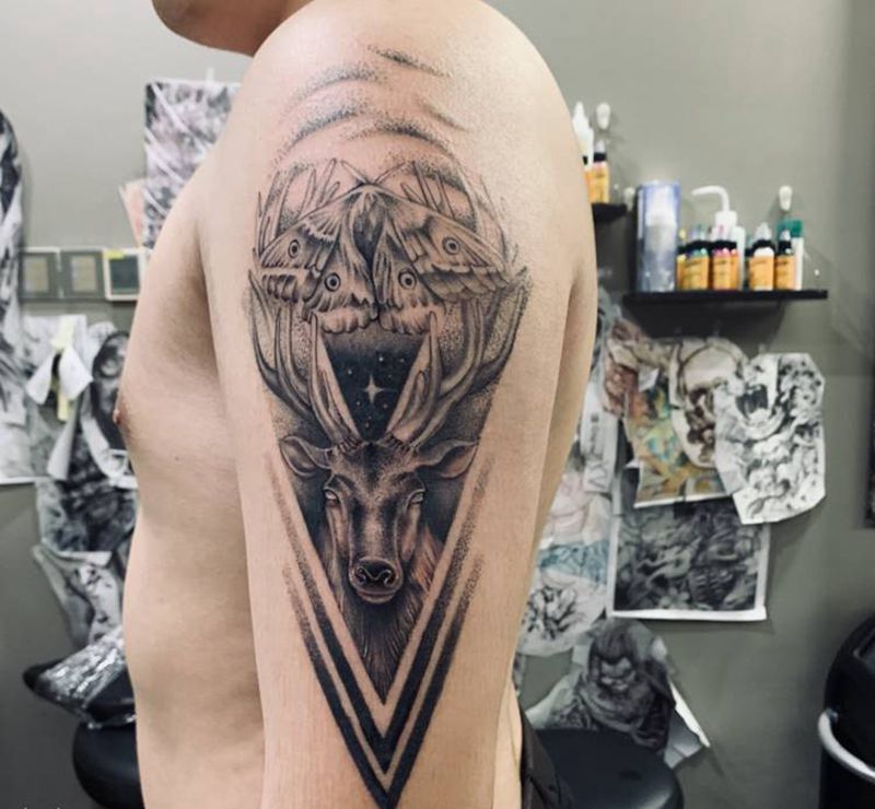 • 纹身吧推荐的披肩图腾半胛纹身图案作品展示