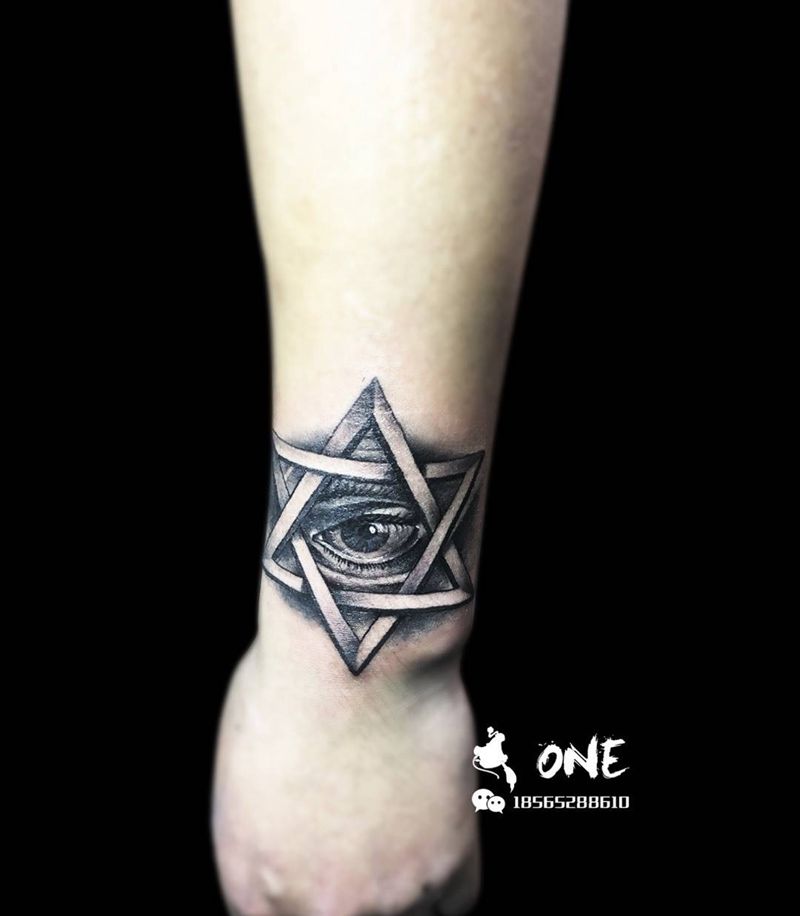 上帝之眼纹身图片_手部手臂欧美写实眼睛写实六芒星纹身图案