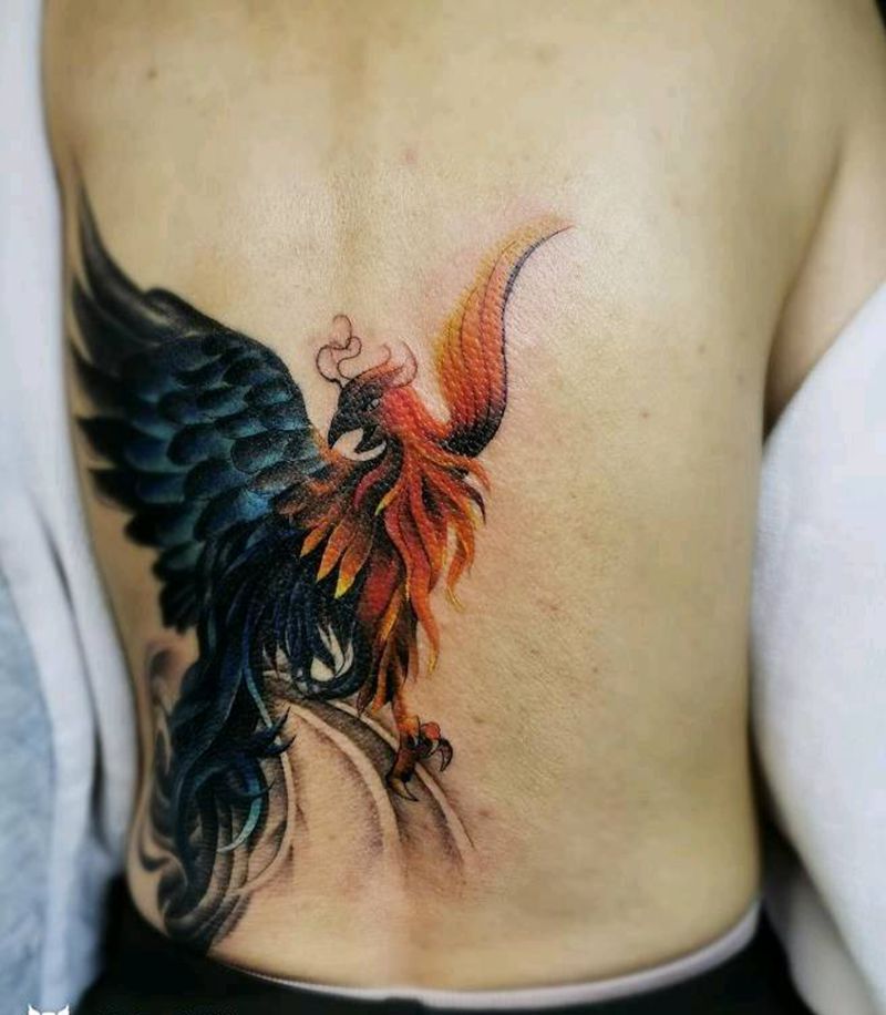 黑灰满背纹身图案