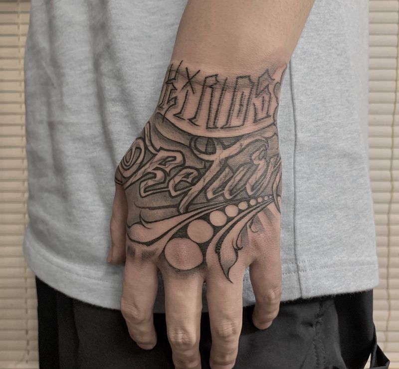 当前位置: 首页 >江西省南昌市纹身店-鸿刺青纹身图案>花体字手背纹身图片_手部花体字纹身图案