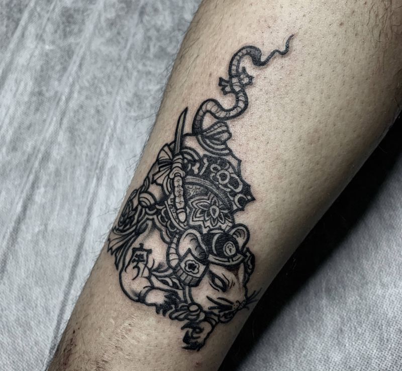 当前位置: 首页 >江西省南昌市纹身店-鸿刺青纹身图案>本命年纹身纹身图片_腿部Old School老鼠