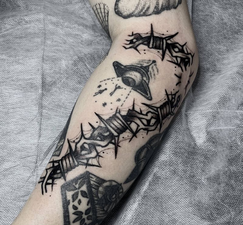 花臂填空题 荆棘纹身图片_手臂Old School荆棘纹身图案