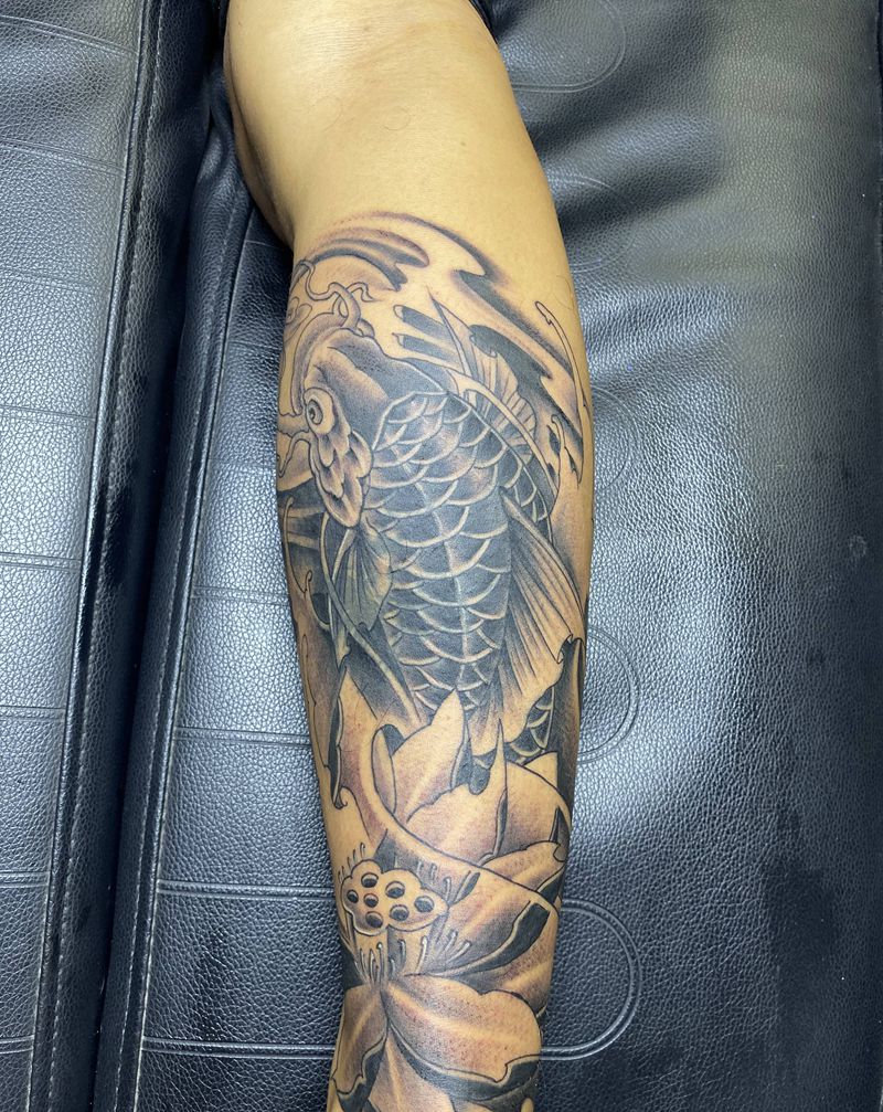 鲤鱼 遮盖纹身图片_腿部新传统纹身图案