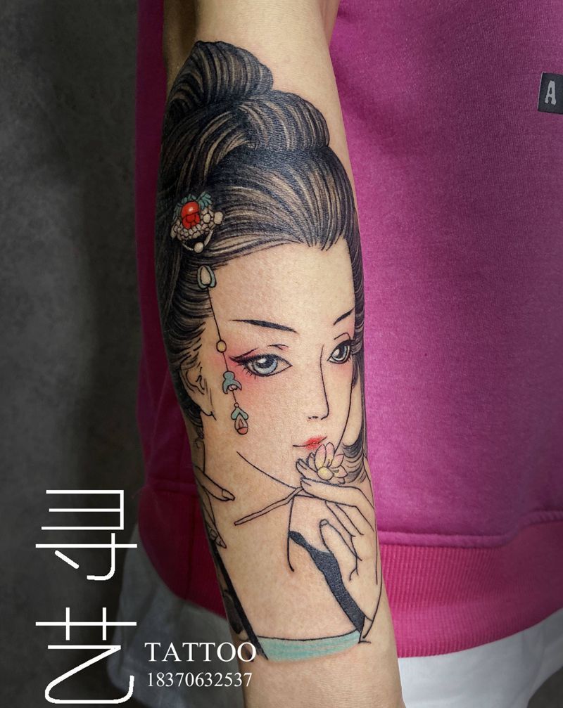 当前位置: 首页 >江西省吉安市纹身店-寻刺青工作室纹身图案>古典美人纹身图片_手臂新传统艺妓纹身图案