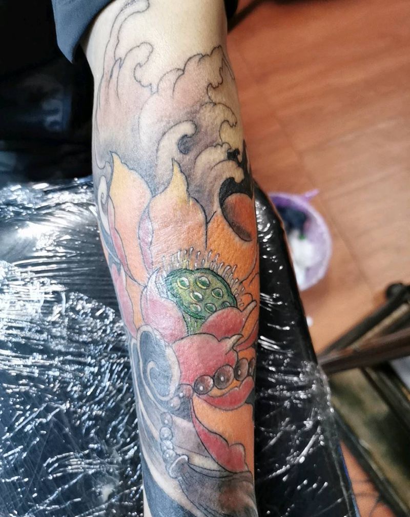 当前位置: 首页 >江西省吉安市纹身店-婉艺纹画刺青纹身图案>小臂荷花纹身图片_手臂老传统纹身图案