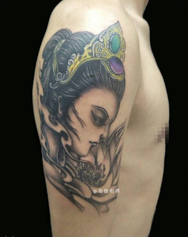• 女性大花胸纹身_43张霸气漂亮的女性大花胸纹身图案作品