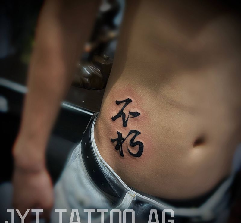 书法字体纹身纹身图片_腹部水墨纹身图案