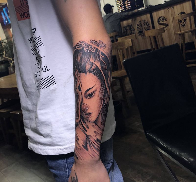 当前位置: 首页 >江西省上饶市纹身店-聚艺堂·刺青-阿光工作室纹身图案>艺妓纹身图片_手臂纹身图案