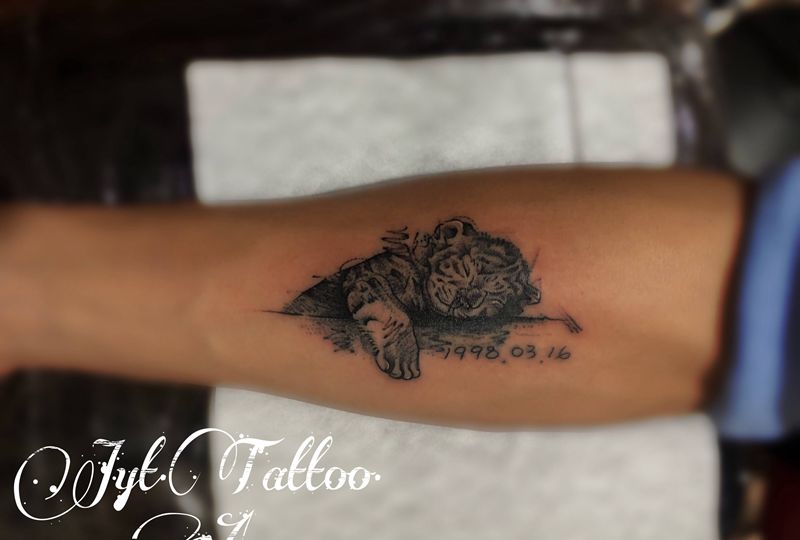 当前位置: 首页 >江西省上饶市纹身店-聚艺堂·刺青-阿光工作室纹身图案>奶奶的小幼虎纹身图片_手臂几何点刺纹身图案