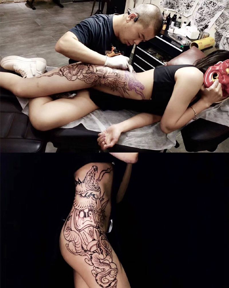 • T网红王老大花腿龙纹身图片_腿部新传统纹身图案
