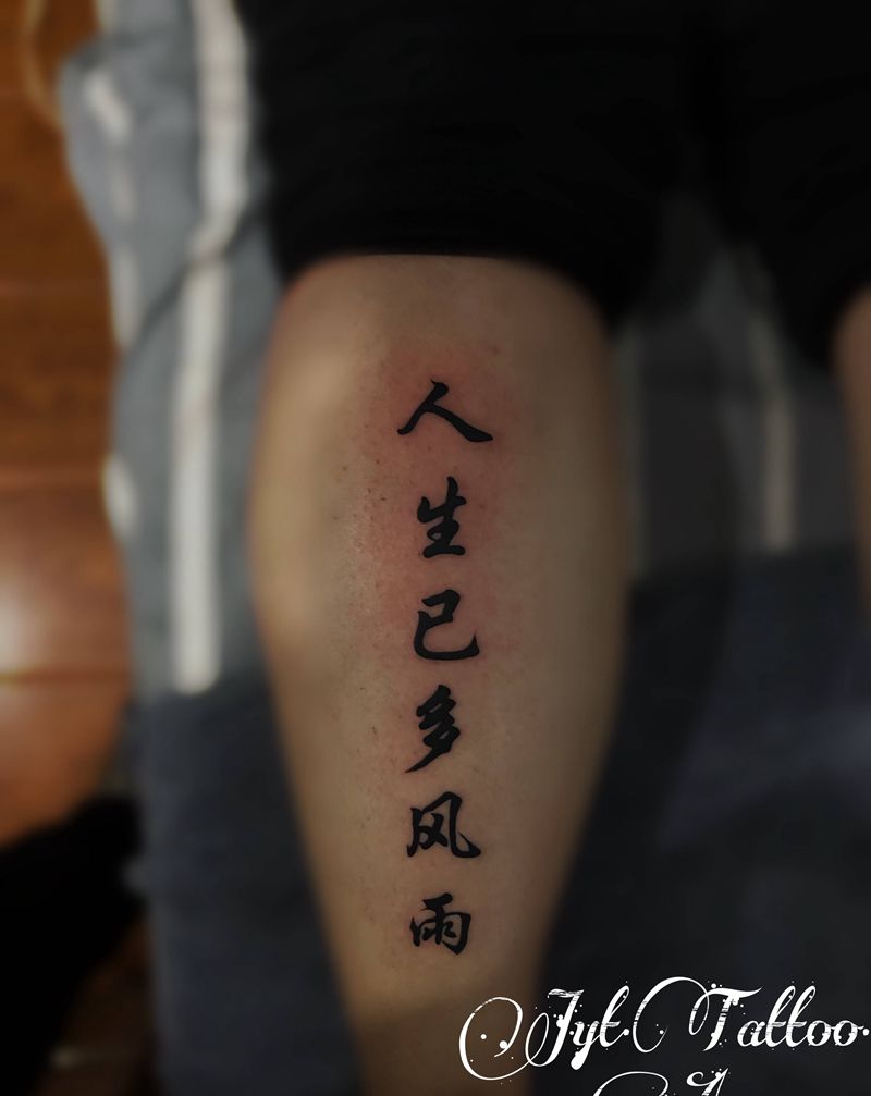 意义字体纹身图片_腿部图腾水墨纹身图案