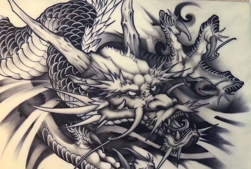 • T云龙九郎纹身图片_背部老传统云龙九郎纹身图案